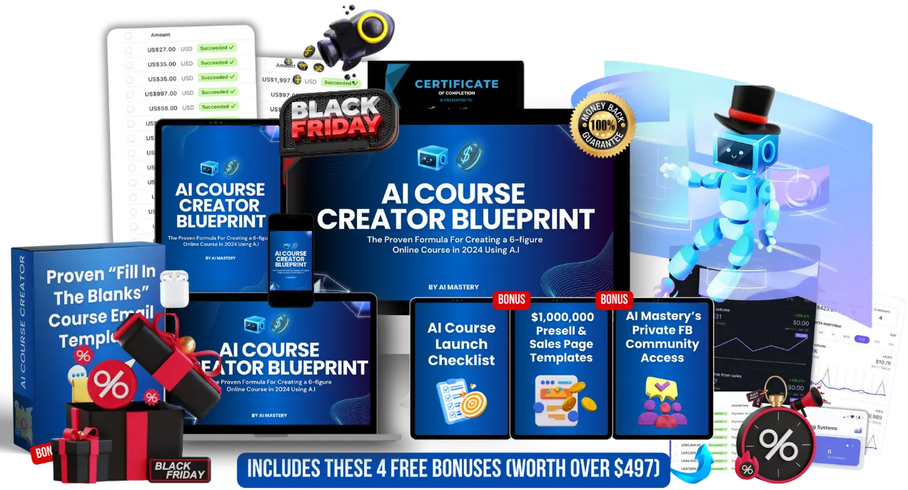 AI Course Creator Blueprint - includes 12 comprehensive Modules , proven systems & strategies, Plus 4 bonuses.